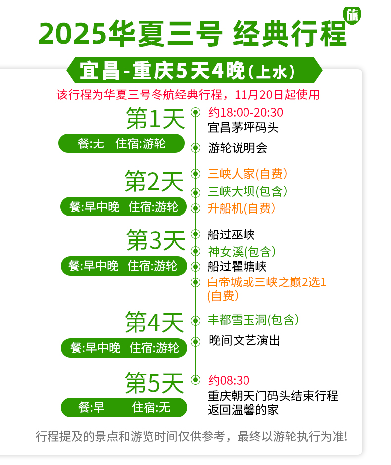 (11月20日起,小三峡更换为神女溪,小小三峡项目取消)